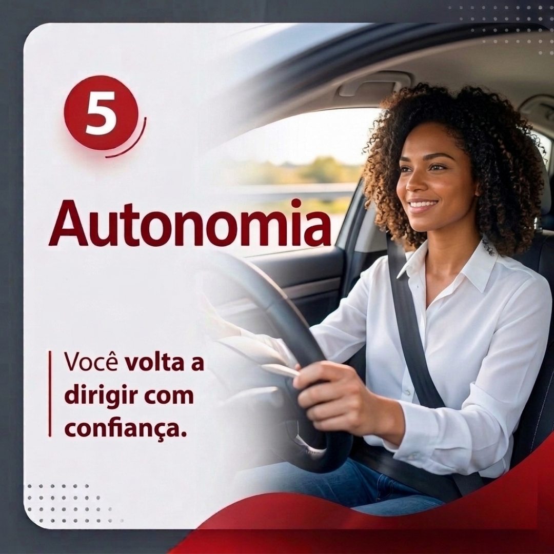 Um processo simples e acompanhado que ajuda você a recuperar sua confiança ao volante, passo a passo.
